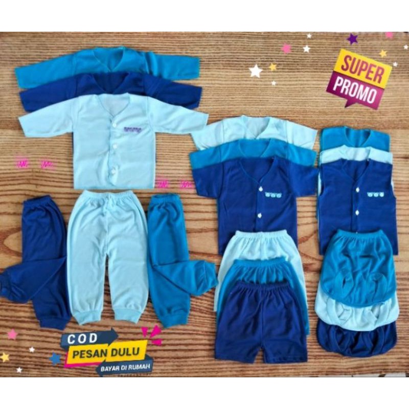 paket hemat baju/celana bayi 0-3 bulan SERI BIRU 9 setel (18 pcs)