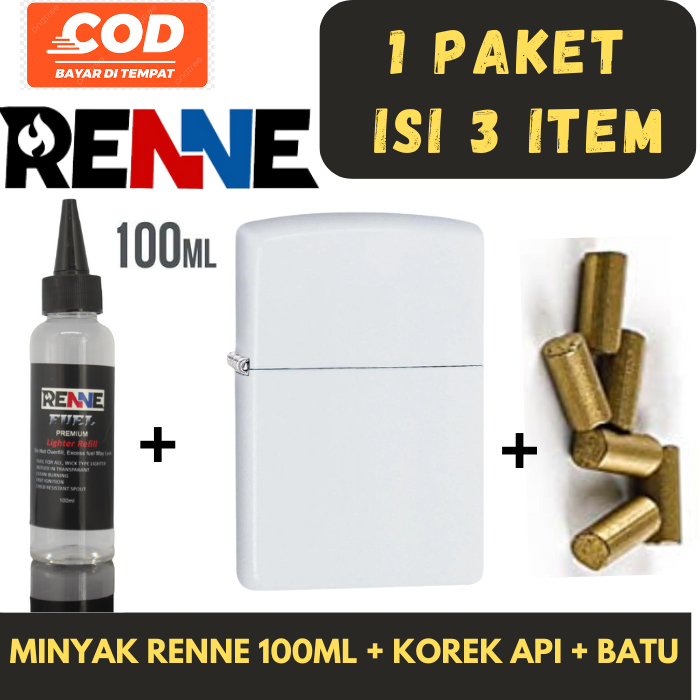 Detail Paket Hemat Korek Api Kantai Putih Plus Minyak Renne 100ml dan Batu Api