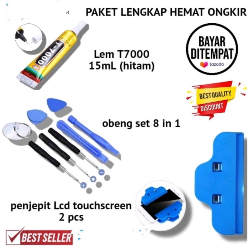 PAKET HEMAT LENGKAP OBENG SERVICE HP + LEM T7000 / B7000 15 ML + PENJEPIT LCD 2 PCS