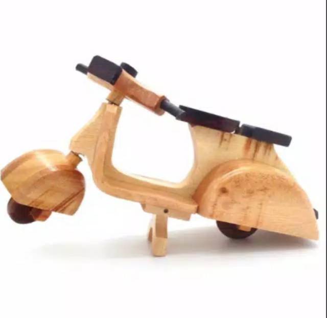Detail PAKET HEMAT MINIATUR KAYU KODE 3 ISI 4 PCS PESAWAT F16 VESPA HARLEY DAVIDSON & SEPEDA ONTEL MURAH