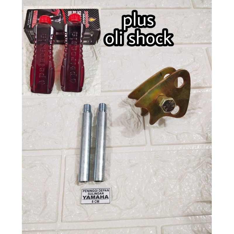 Otomotif > Suku Cadang Motor > Shock, Strut, & Suspensi Motor > Paket hemat Peninggi Shock Depan 8cm DAN Belakang + oli shock MX old MX new MX king pnp