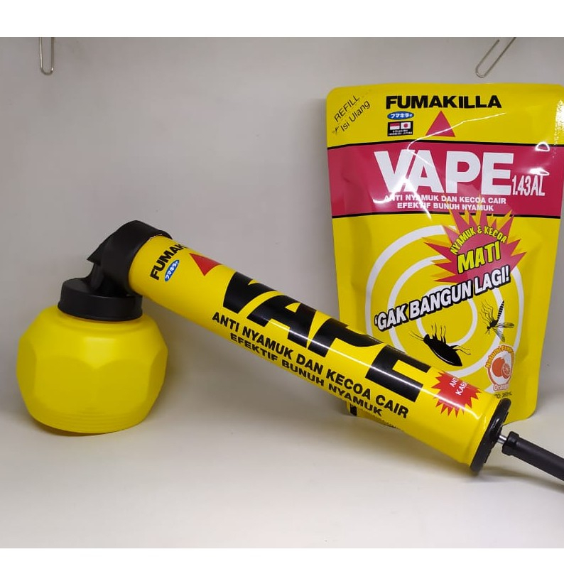 PAKET HEMAT FUMAKILLA Cair Refill Anti Nyamuk Dan kecoa + Pompa Penyemprot merupakan cairan pembasmi serangga dalam kemasan. Obat anti nyamuk dan kecoa vape telah lama membantu banyak orang untuk membasmi nyamuk dan kecoa setiap harinya sehingga ruangan anda menjadi lebih nyaman dan sangat praktis dengan menggunakan pompa penyemprot sehingga aman di gunakan.