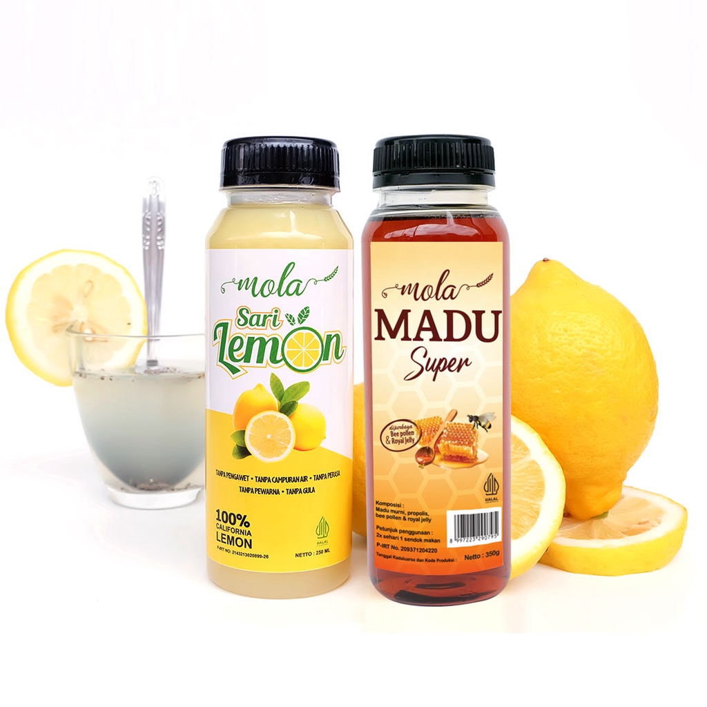Paket Imunitas2 in 1 Mola Sari Lemon + Mola Madu yang bisa dipadukan agar meningkatkan daya tahan tubuh dan kesegaran dari kandungan Madu Propolis dan Lemon segar sehingga membuat badan terasa segar sehat menajalani aktivitas harian anda.