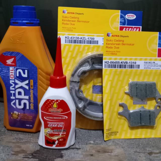 Paket kampas rem depan belakang+ SPX 2 full sintetic 800ml+ oli gardan petromax for Vario F1/Beat