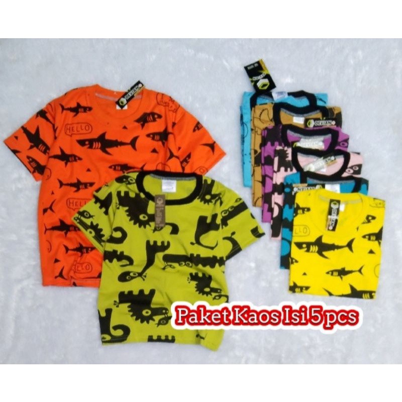 Paket Kaos Anak Motif Isi 5pcs * Bahan : Katun 24s,28s * Motif Random * Bahan Halus * Bahan Nggak Nerawang * Banyak Warna * 5pcs dikirim warna campur (beda warna)
