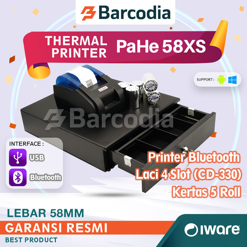 PAKET KASIR EKONOMIS C58XS + LACI UANG + KERTAS - PAKET PRINTER BLUETOOTHPAKET KASIR EKONOMIS C58XS + LACI UANG + KERTAS - PAKET PRINTER BLUETOOTH