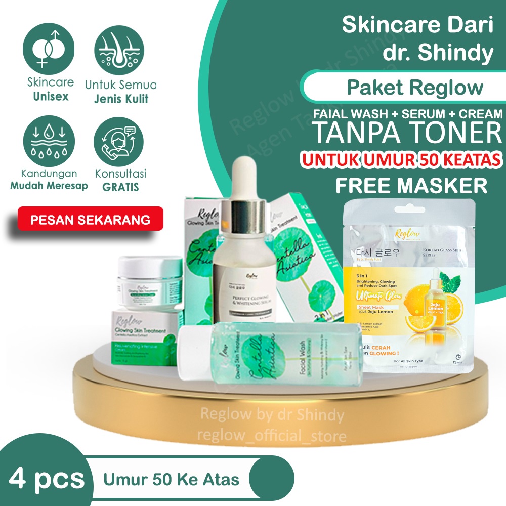 PAKET KHUSUS UNTUK UMUR 50 TAHUN KEATAS (TANPA TONER) Reglow Facial Wash Serum cream free masker Reglow Skincare Original Produk Selalu Ready Langsung Order Kaka SayPaket Reglow Skincare Original Glowing Skin Treatment Perawatan Pemutih Wajah BPOM