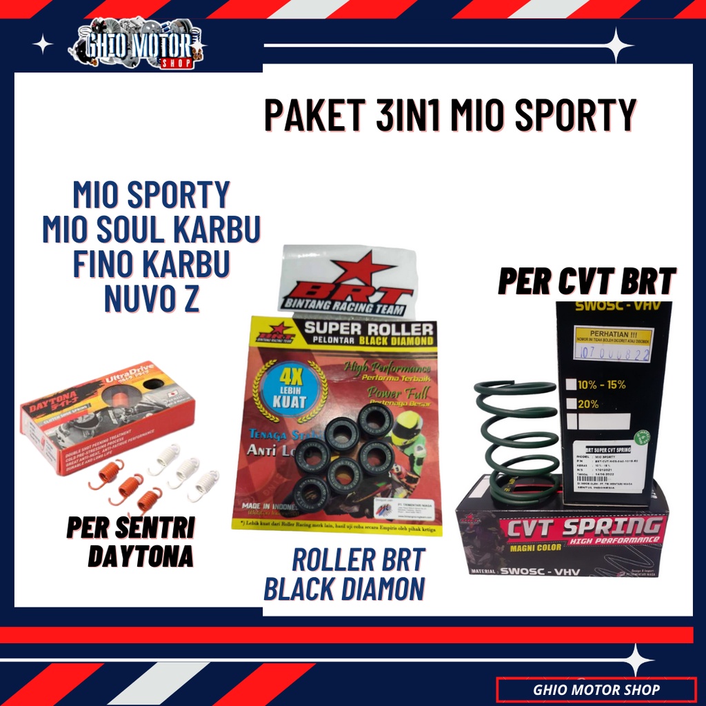 Otomotif > Suku Cadang Motor > Suku Cadang Motor Lainnya > PAKET KIRIAN CVT 3IN1 MIO SPORTY MIO SOUL KARBU NUVO Z NUVO LELE FINO KARBU UPGRADE CVT MIO SPORTY ROLLER BRT MIO SPORTY PER CVT BRT MIO SPORTY PER SENTRI CENTRI DAYTONA MIO SPORTY STANDAR KIRIAN MIO KARBU CVT MIO KARBU GHIO MOTOR SHOP