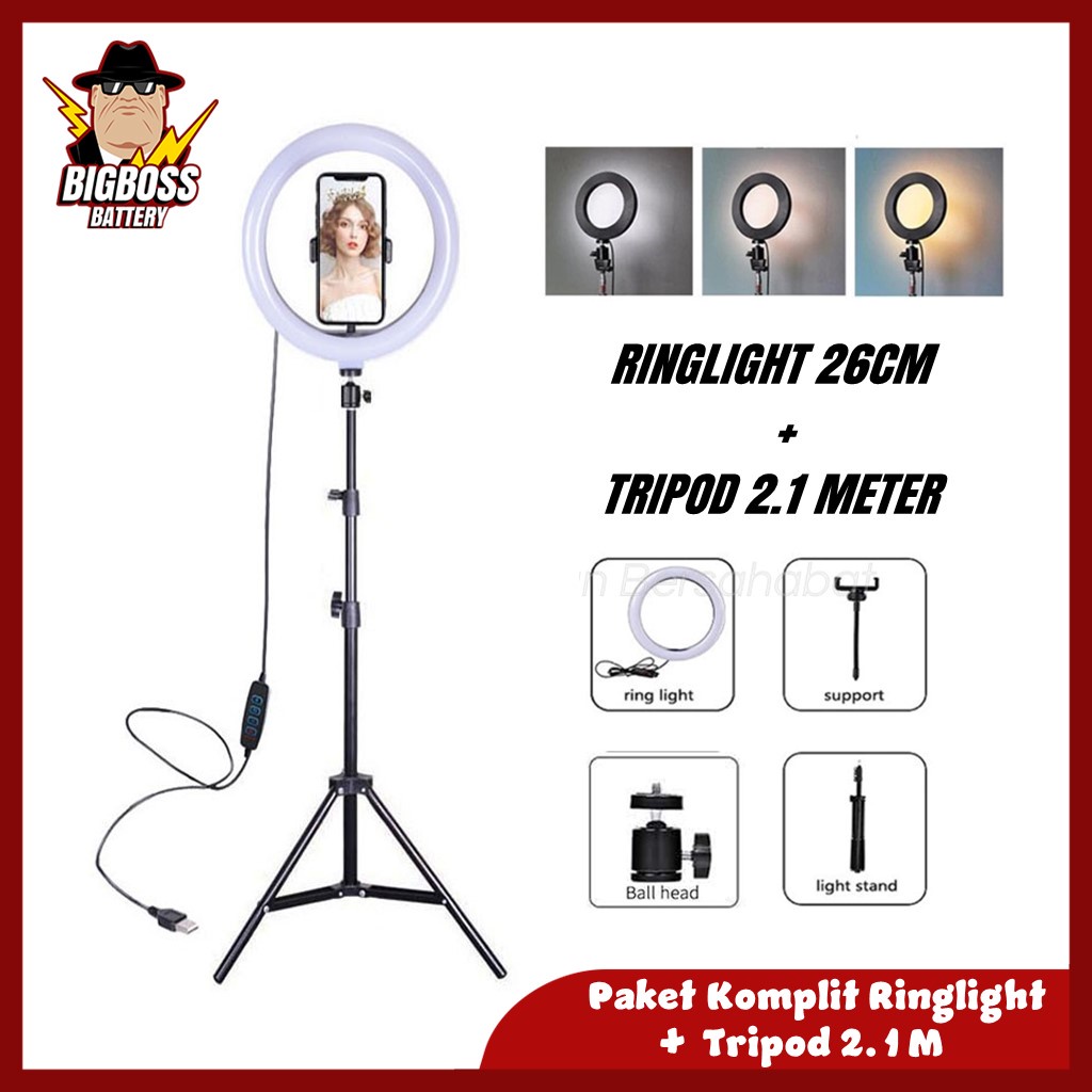 Detail Paket Komplit Ringlight 26cm + Tripod 2,1 Meter Make Up Vlog Selfie Lampu Ringlight
