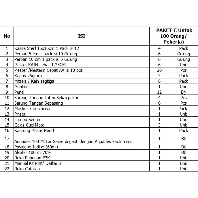 Kotak P3k dengan Isi Tipe C 100 Orang Pekerja