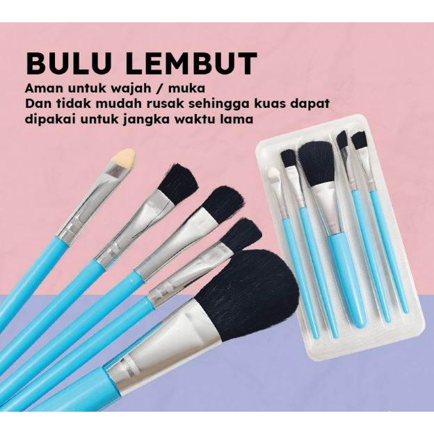 Perawatan & Kecantikan > Aksesoris Make Up > Make Up Brush > Paket Kuas Make Up Set 5 IN 1 Mini Travel / Brush Eye Shadow Foundation Blusher Tools Kuas Make Up Set