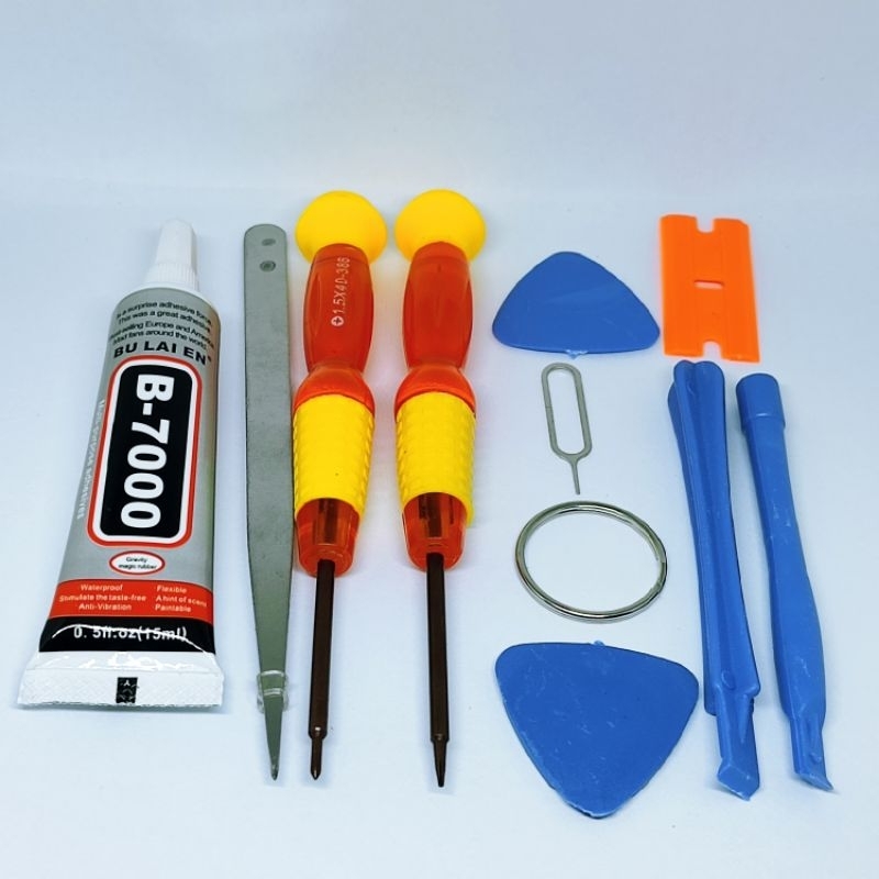 paket kumplit alat service hp handpine obeng 10 in 1 set plus lem b7000 15ml hitam b7000 15ml bening
