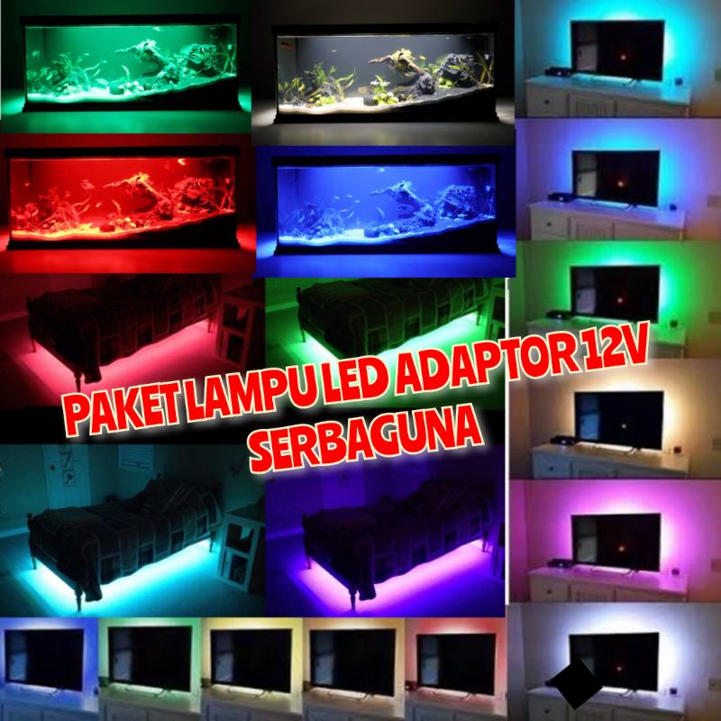 Detail PAKET LAMPU LED ADAPTOR 12V LAMPU AQUARIUM KOLONG MEJA KURSI TEMPAT TIDUR BELAKANG TV LAMPU BELAJAR