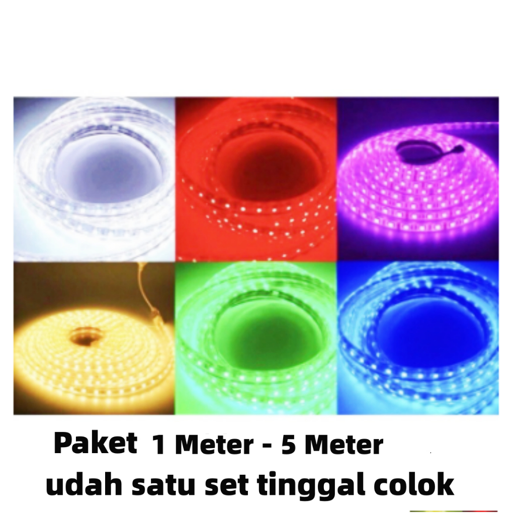 Detail PAKET LAMPU LED STRIP SELANG 5050 SMD AC 220V OUTDOOR INDOOR 1M - 5M LENGKAP TINGGAL COLOK
