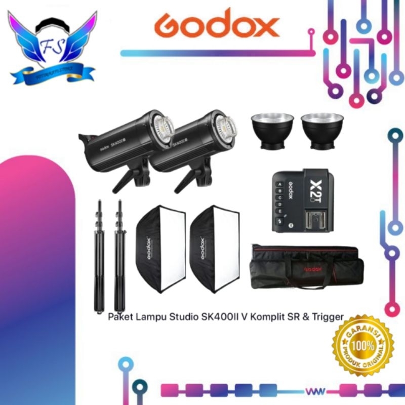 Paket Lampu Studio Godox SK400ii-V SK400iiV SK400 ii V With X2T