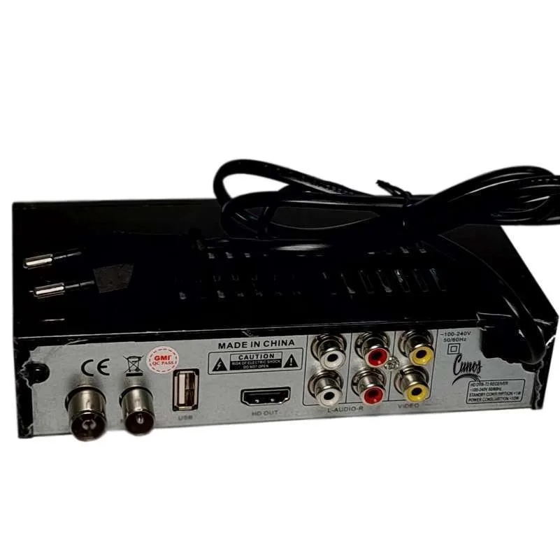 Spesifikasi : -Tegangan 100-240v,50/60Hz -Daya 10 Watt -Keluaran Video Komposit (CVBS) HDMI (576P/720P/1080i/1080P) -Dekoder Video MPEG 4 (H.264), MPEG 2 -Berat Bersih 259 g -Berat Kotor 377 g -Port HDMI (1), USB (2), RCA (2) ,RF IN (1), RF Loop (1)
