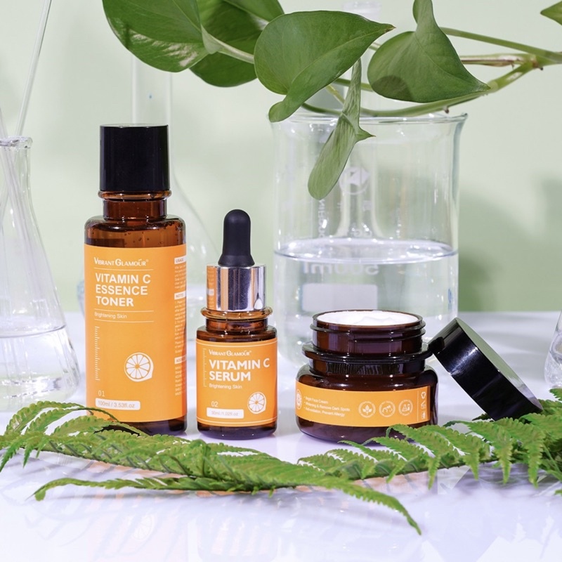 🍊Why choose VIBRANT GLAMOUR Vitamin C set ? Japanese research-grade customized whitening and hydrating formula,VIBRANT GLAMOUR lab research found that "micro-molecular VC + Vitamin B5+Niacinamide + Carbomer + Glycyrrhiza glabra" can effectively brighten and whiten, improve spots, soothe and repair the skin, replenish lost moisture and nutrients, making skin delicate, clear, hydrated and lubricated.
