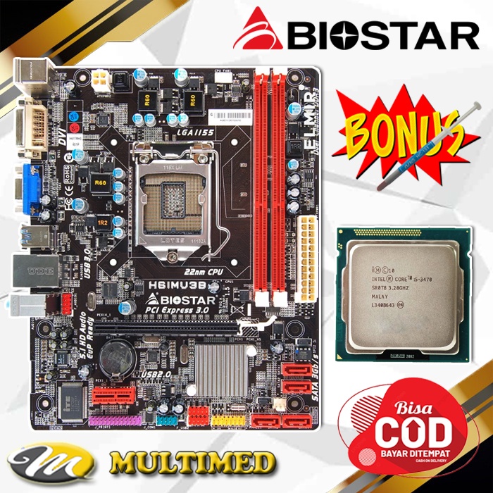 Paket Mainboard 1155 H61 Ddr3 + Processor Core i5 3470