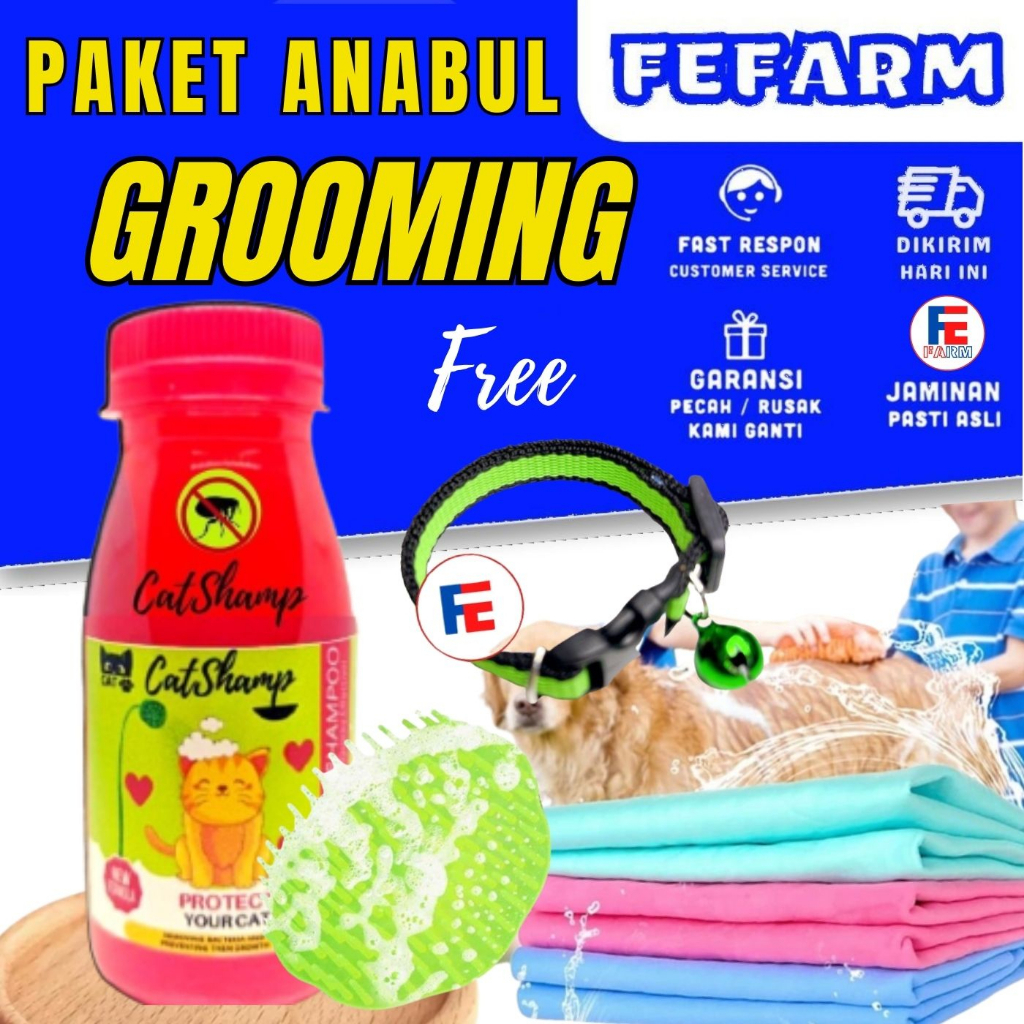 Paket mandi kucing dapat handuk shampo sisir keramas dan free kalung kucing ya