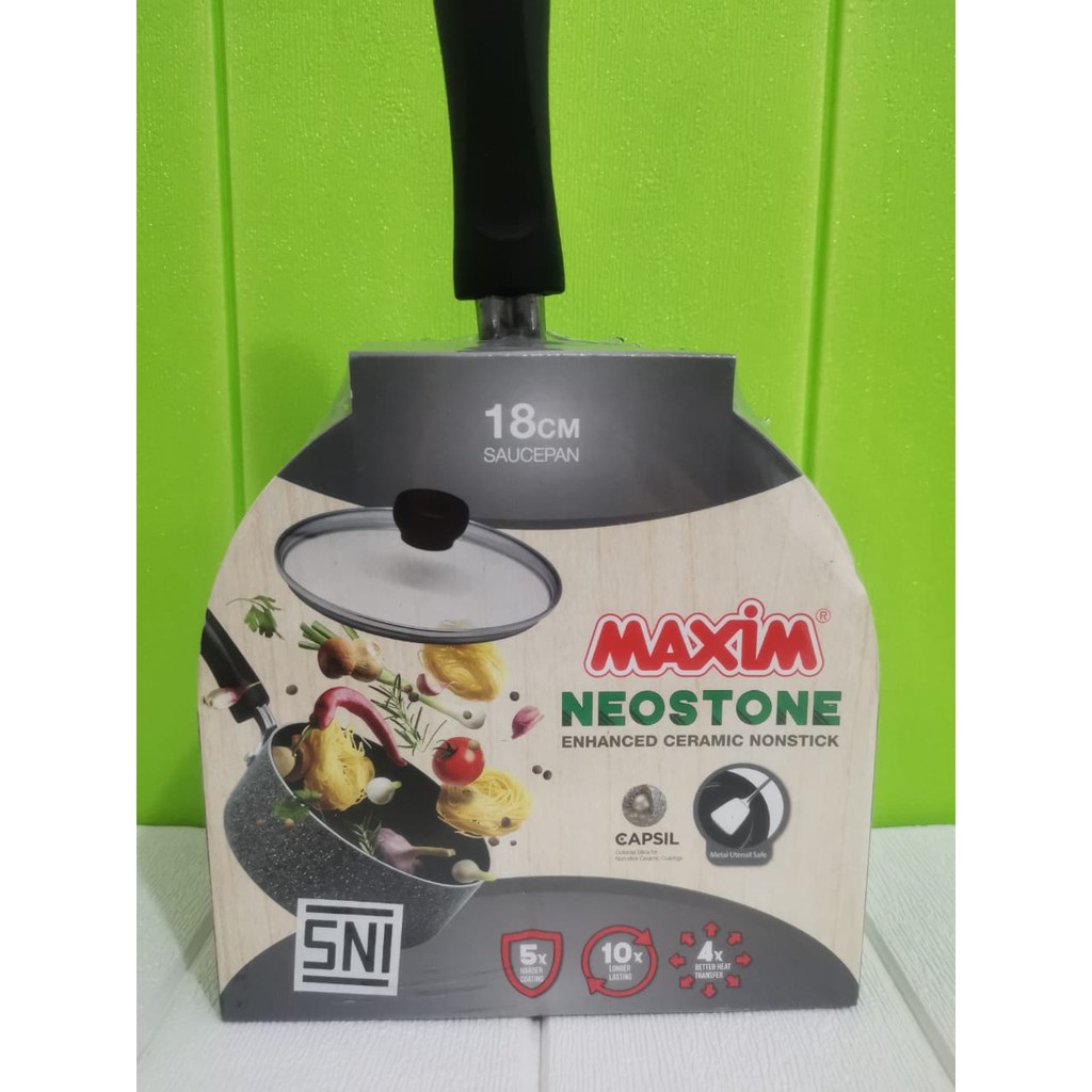 Detail PAKET Maxim 2PCS Neostone Deep Wok 24 cm+18CM SAUCEPAN + TUTUP KACA MANTAP