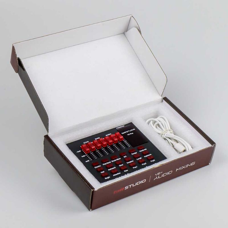 1 x Professional Condenser Studio Microphone with Shock Proof Mount - BM-800 1 x Windsheld 1 x Shockproof Mount 1 x XLR Cable 1 x Soundcard V8 taffSTUDIO 2 x Kabel Audio 1 x Kabel USB 1 x User Manual Mixer V8s 1 x Microphone Stand Flexible Lazypod - RT-222B 2 x Smartphone Clamp Holder 2 x Flexible Extension for Smartphone Holder 1 x Microphone Holder 1 x Pop Filter 1 x Ring Light 1 x Base