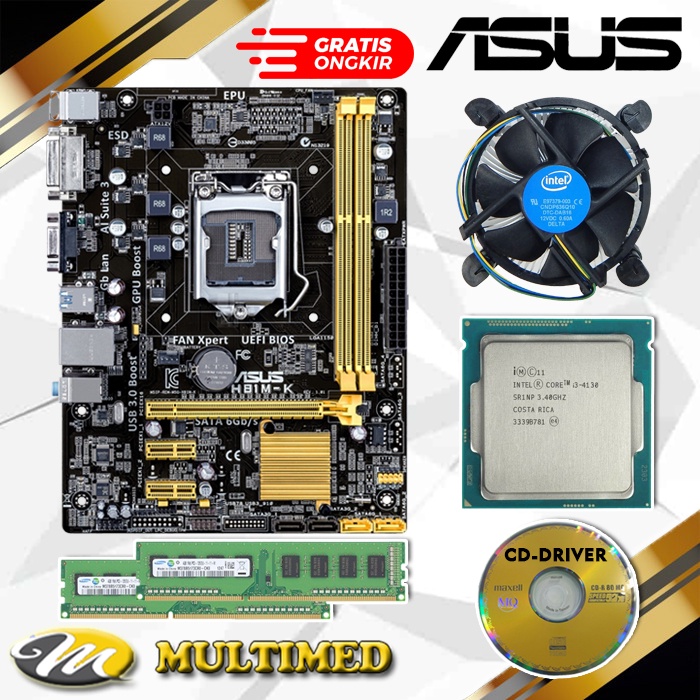 Detail Paket Motherboard Mainboard Mobo LGA 1150 H81 DDR3 + Core I3 4130 + FAN + RAM 8GB