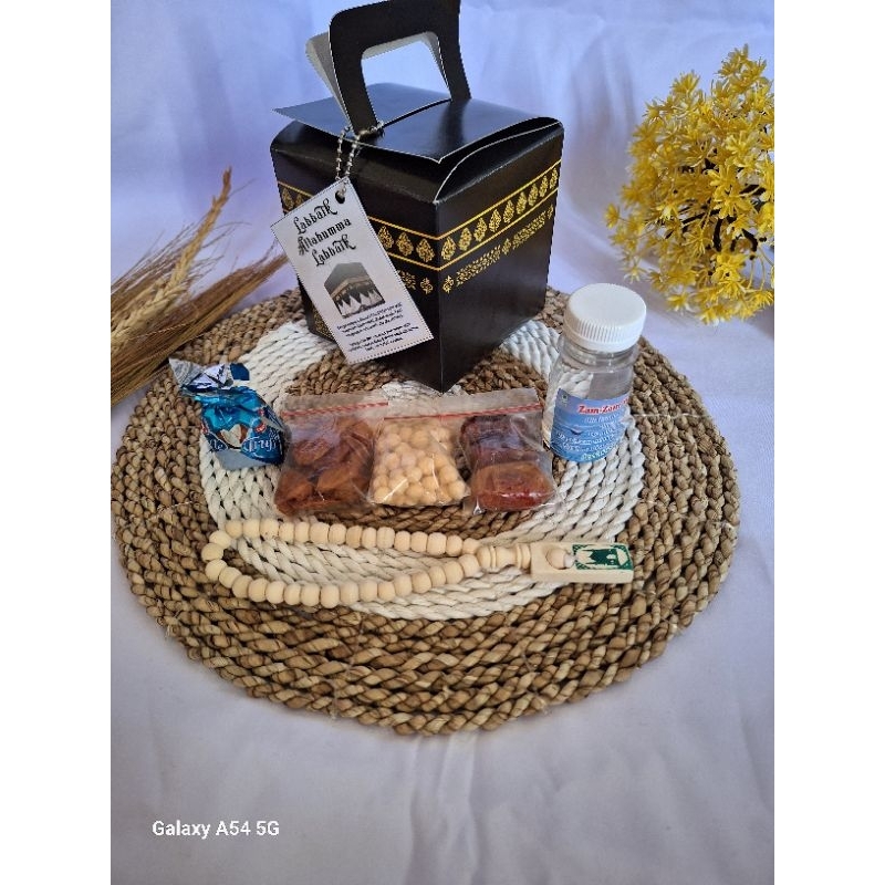 paket 3 berisi box kakbah Kurma Kismis Kc arab Zam zam 50 ml Coklat turki hena