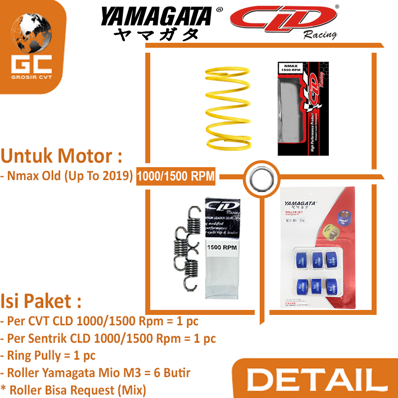 Detail Paket Per CVT + Sentrik + Roller Yamaha Nmax Aerox Lexi Old New 125/150/155 CLD YAMAGATA 1000/1500 RPM