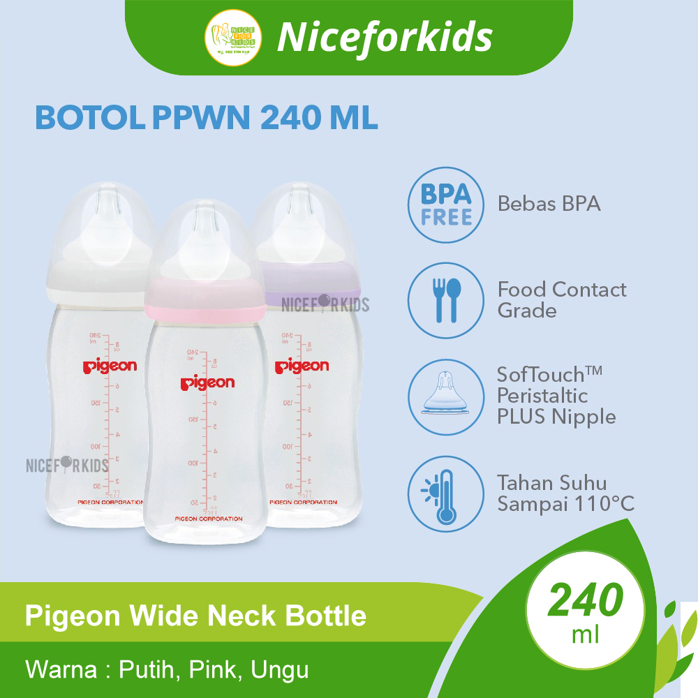 Pigeon Soft Touch Peristaltic Plus Wide Neck. Membantu bayi menyusu secara alami seprti yamng dipelajari saat menyusu melalui payudara ibu.