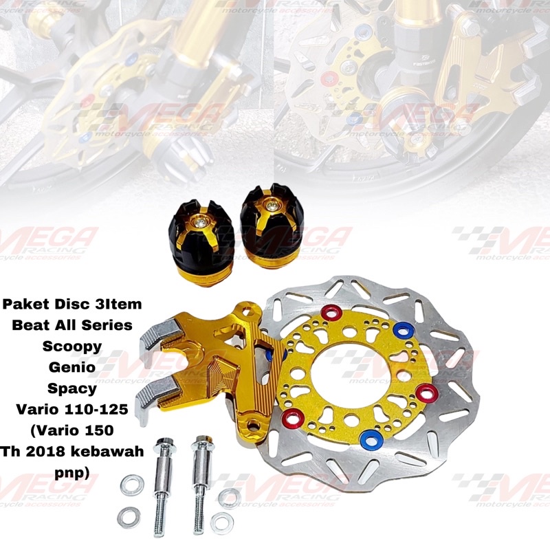 Otomotif > Suku Cadang Motor > Sistem Pengereman > PAKET PIRINGAN CAKRAM BEAT VARIASI + COVER KALIPER + JALU AS RODA DEPAN MOTOR HONDA MATIC BEAT VARIO GENIO SCOOPY FI KARBU 110 125 150 NEW LED OLD