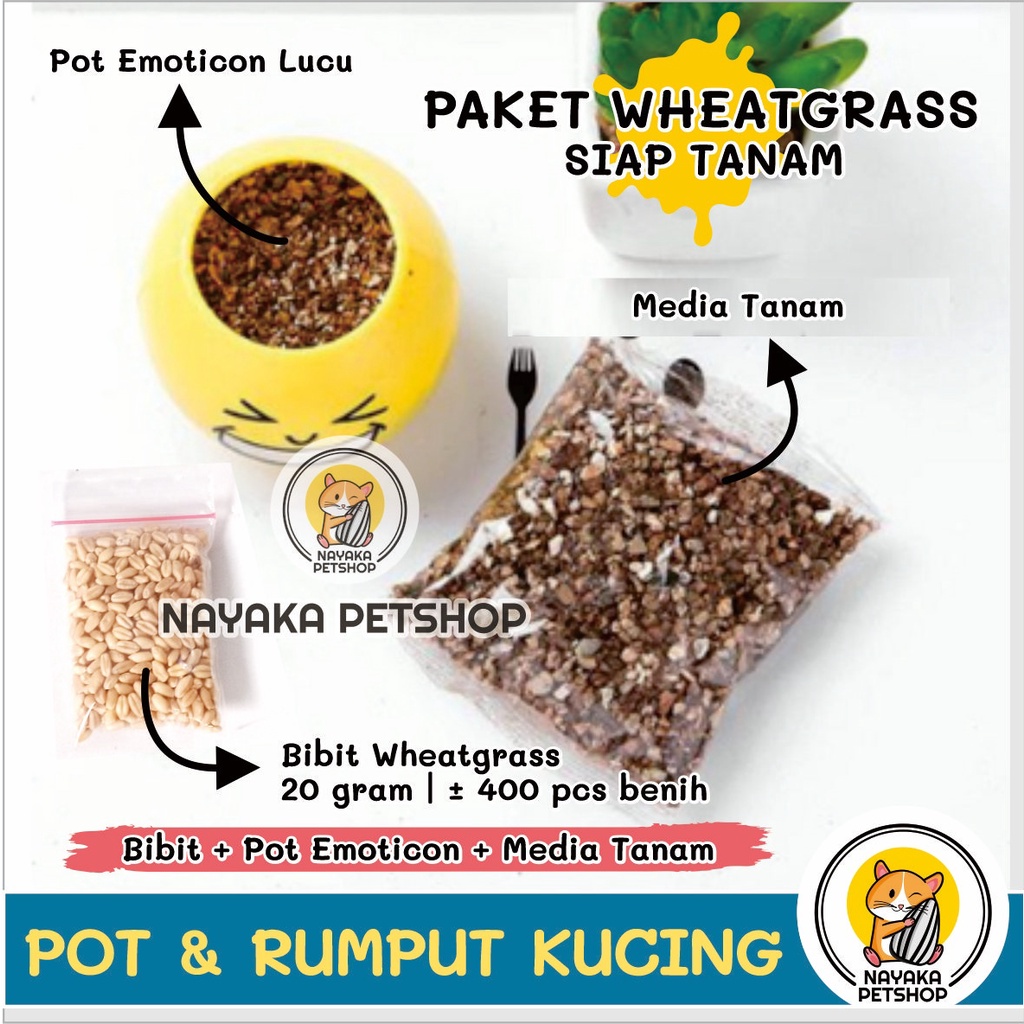 Detail Paket Rumput Kucing Pot Emoticon Lucu Tempat Tanam Wheat Grass Wheatgrass Benih Bibit Rumput Gandum