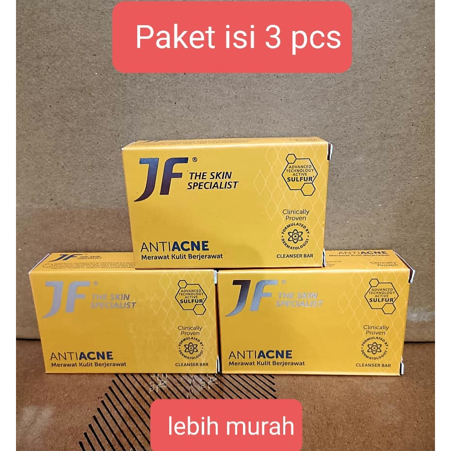 Sabun mandi JF Sulfur Anti Acne 90 GR membersihkan kulit berjerawat, membunuh bakteri penyebab jerawat, dan mengurangi kelebihan minyak