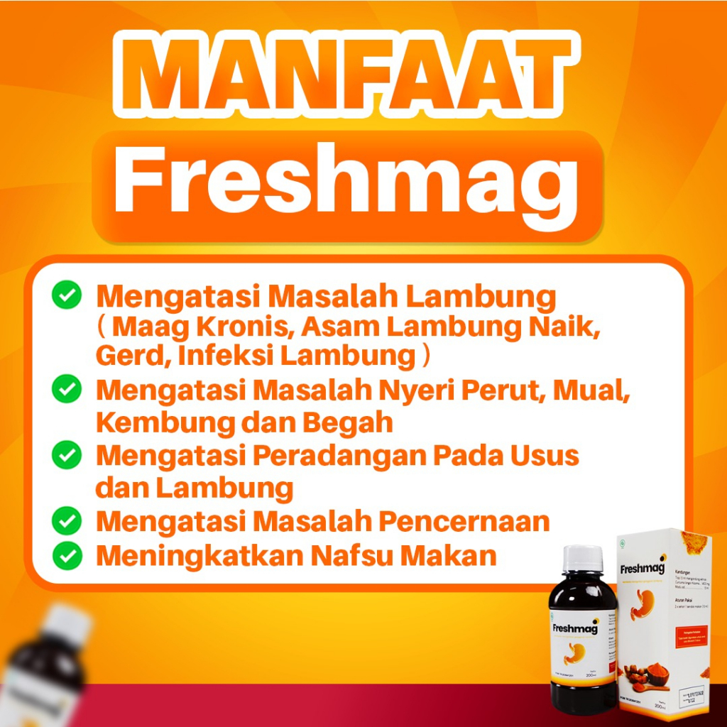Freshmag merupakan solusi bagi Anda yang memiliki masalah dengan lambung, freshmag merupakan madu herbal dengan bahan-bahan alami yang sudah terbukti dan teruji mampu mengatasi permasalahan lambung..