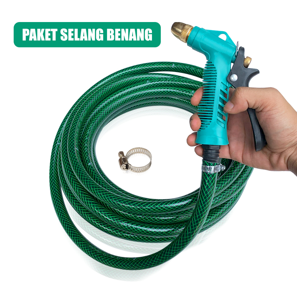 Perlengkapan Rumah > Taman > Sistem Pengairan > Paket Semprotan Cuci Motor Mobil Siram Tanaman Selang Air Ukuran 1/2, 5/8, 3/4 - Paket Selang Benang 1/2, 5/8, 3/4 Inch Anti Lumut 2, 5, 10 Meter + Semprotan Nozzle Spray Watergun