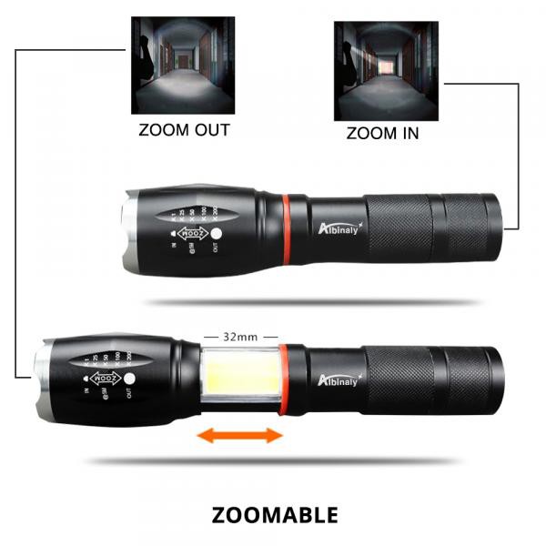 Senter LED ini hadir dengan 2 jenis LED yaitu Cree XM-L T6 pada bagian depan dan LED COB pada bagian samping yang berfungsi seperti lampu lantera atau torch light. Dapat ditempel pada permukaan besi karena tail cap senter ini memiliki bahan magnet yang kuat.
