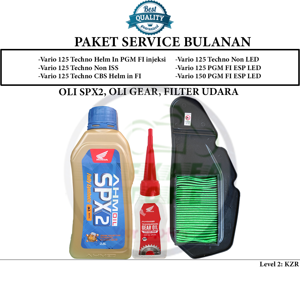 Paket service bulanan: -OLI AHM MPX2 800 ML atau OLI AHM SPX2 800 ML -OLI GARDAN 120 ML -Filter Udara 17210-KZR-600