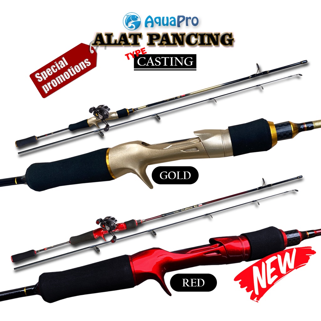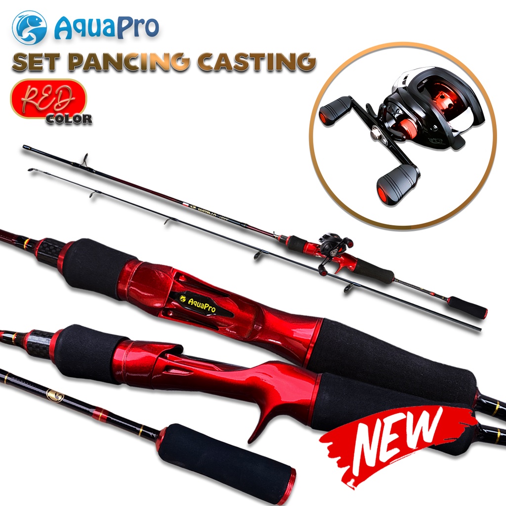 Paket Produk : Joran Pancing Casting JR011 Reel Pancing Casting Red & Gold Bonus Senar Pancing