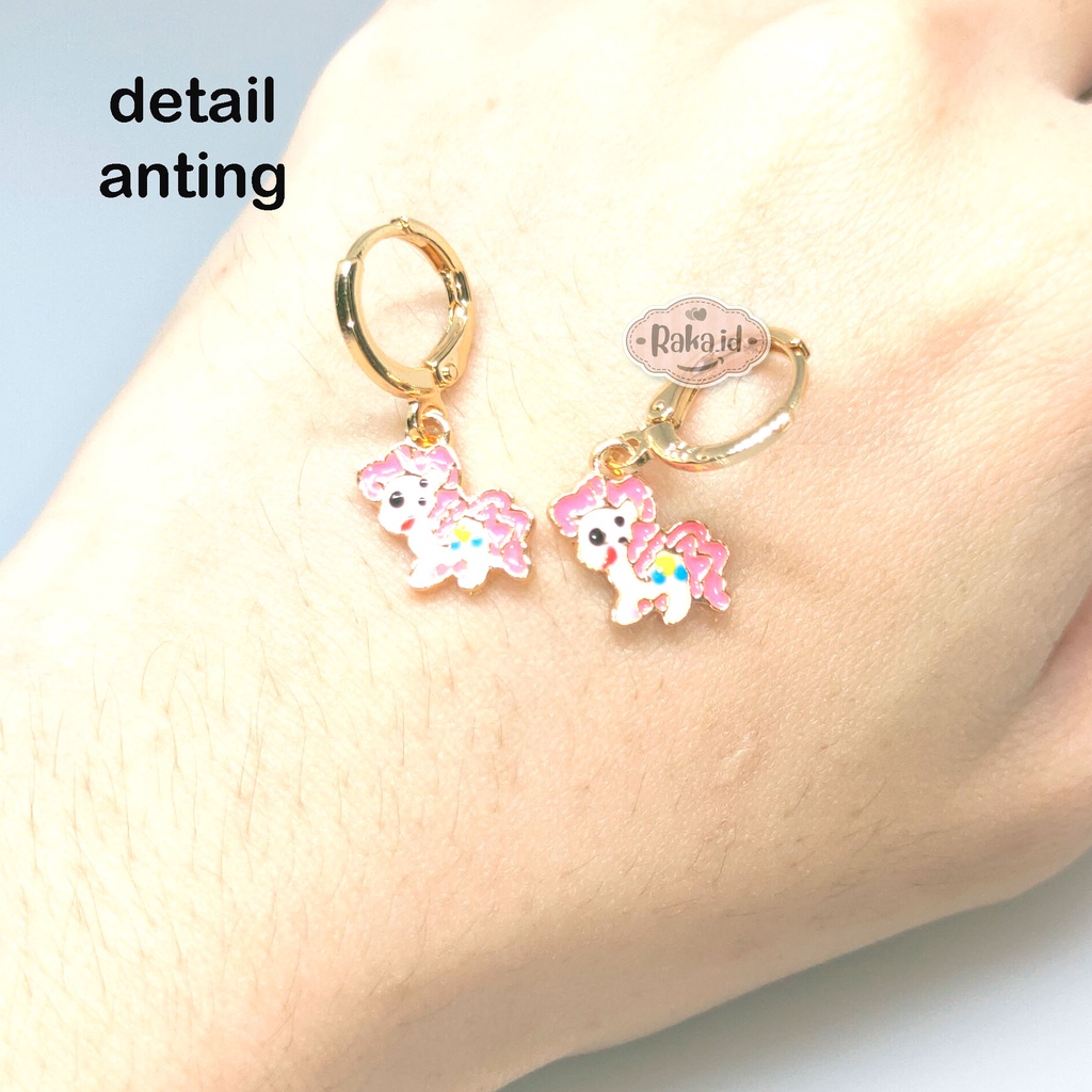 Detail Paket Set Anak Kalung + Gelang + Cincin + Anting Unicorn Pink Gold Perhiasan Anak 737