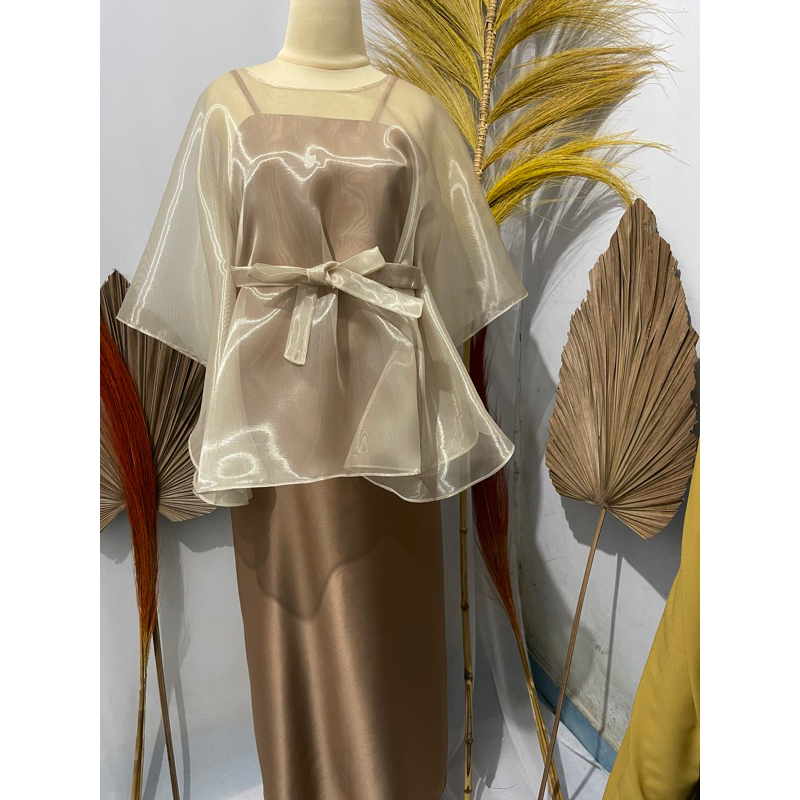 Pakaian Wanita > Set > Set Wanita > PAKET SETELAN ORGANZA | Organza Set with Inner dress silk premium | Setelan kondangan Pesta Luxury mewah simple Organza murah