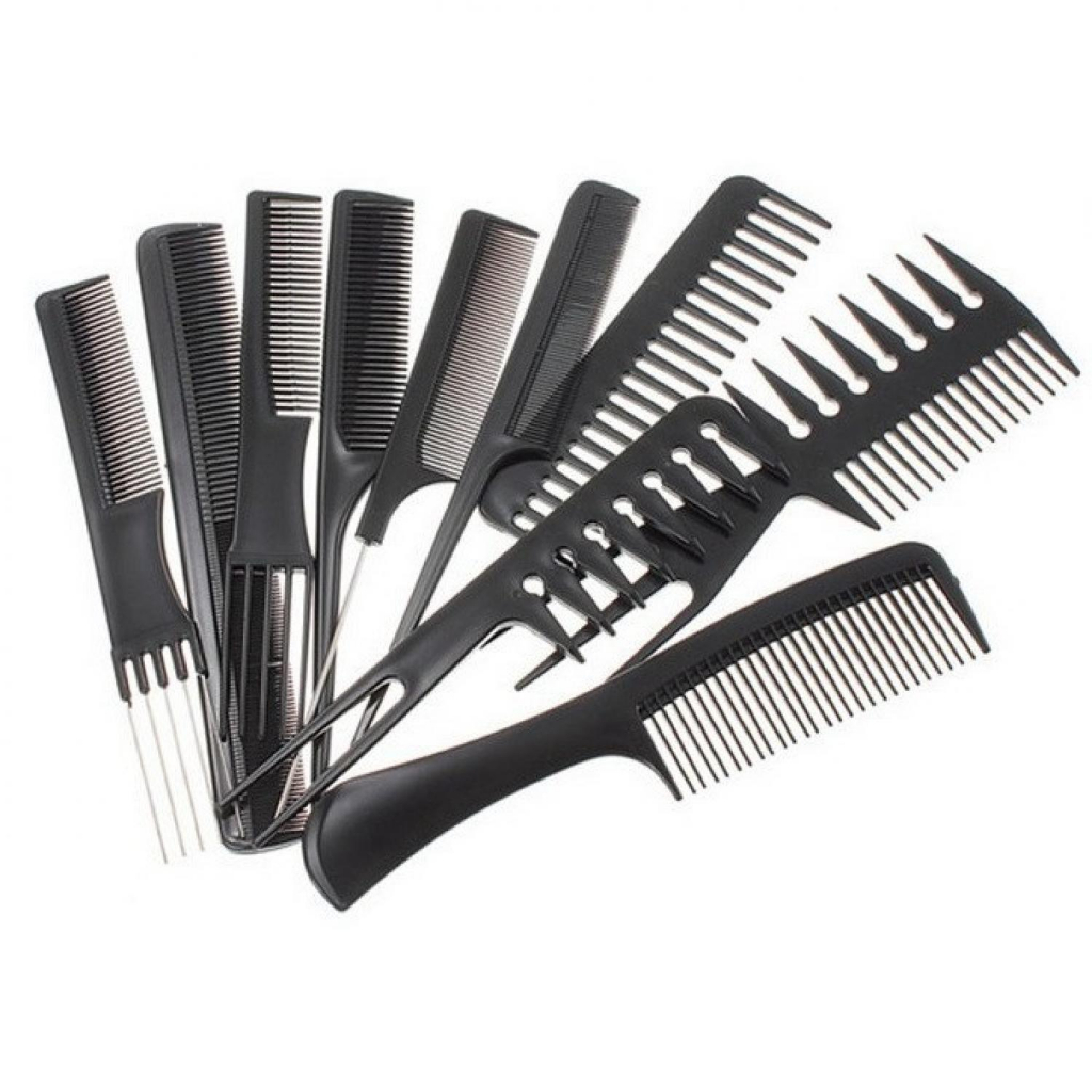 Sisir set ini terdiri dari 10 jenis sisir berbeda yang biasa digunakan untuk menata maupun keperluan potong rambut. Setiap sisir memiliki bentuk dan tingkat kerapatan gigi yang bervariasi sehingga dapat digunakan sesuai kebutuhan dan keperluan Anda.