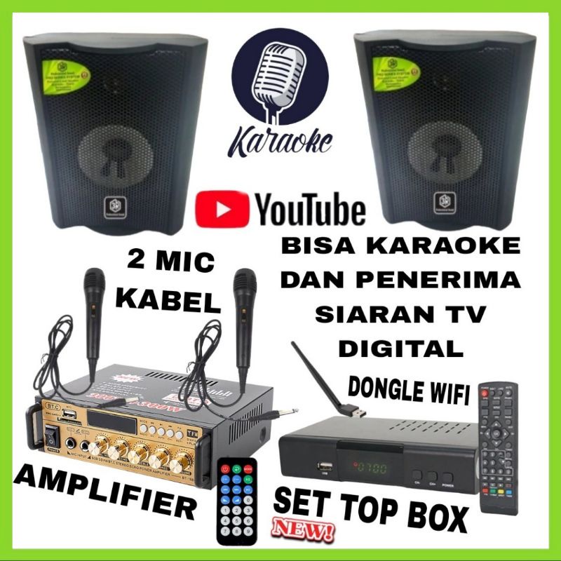 paket sound karaoke Set top box berfungsi untuk menerima siaran UHF digital DVB T2 melalui antena uhf biasa/ maupun antena uhf digital, cocok bagi anda yang wilayahnya sudah bisa menerima siaran digital, sebab gambar lebih bening daripada uhf analog dan bisa karaoke di youtube tinggal aktifkan wifi