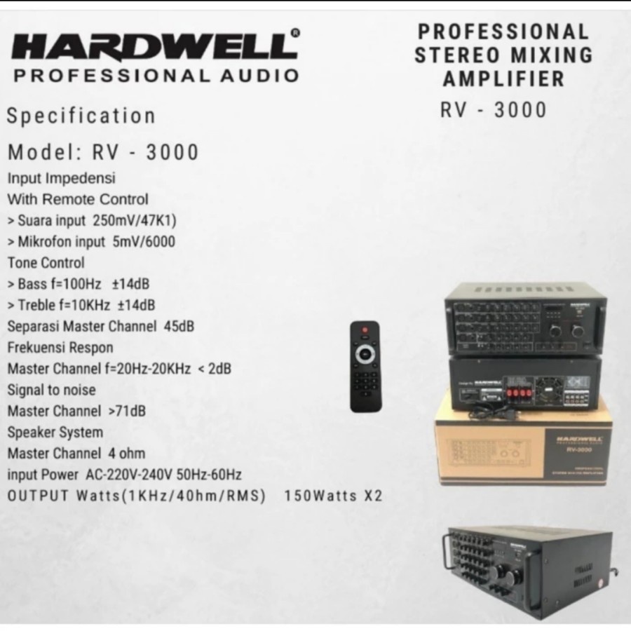 Power Amplifier hardwell Rv3000 350 watt x2= 700 watt. Blutooth / Usb 8 colokan mic echo / mid / lo / hi