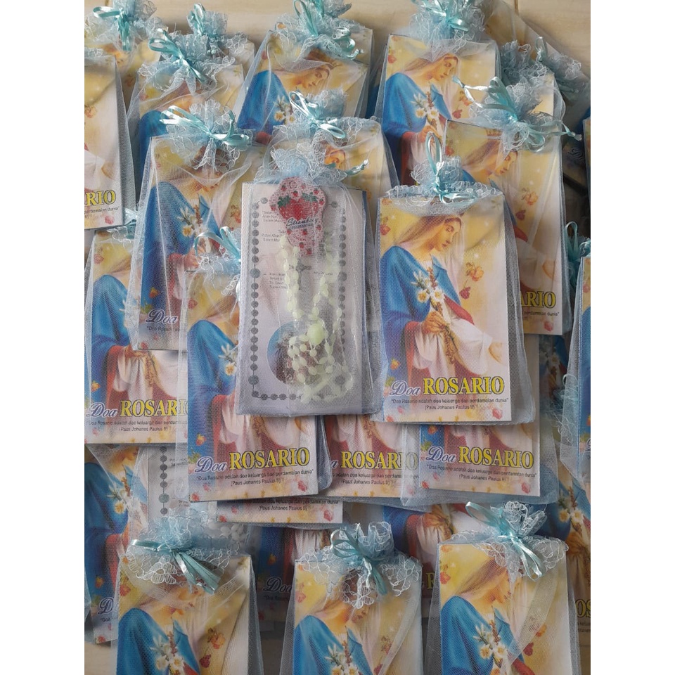 Detail Paket Souvenir Doa Rosario Katolik / Kalung Rosario / Lembar Doa Rosario / Souvenir Murah