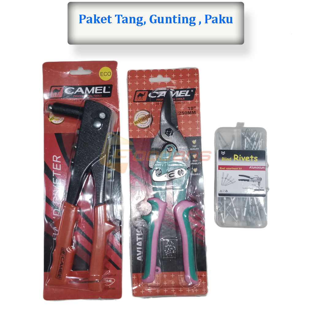 Paket Tang Rivet Camel, Gunting Holo Camel dan Paku Rivet
