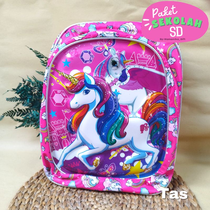 Detail PAKET TAS SEKOLAH SD TEMA UNICORN / KADO ULANG TAHUN ANAK / HAMPERS TAS UNICORN