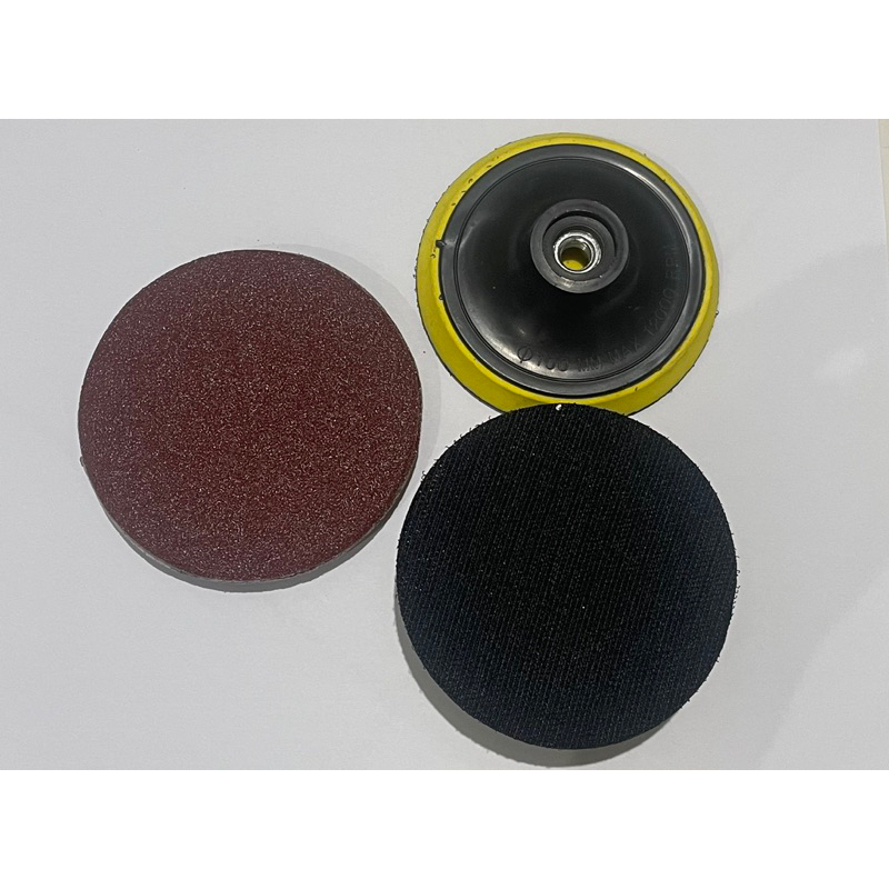 Detail Paket tatakan amplas velcro 4” 2pcs + amplas bulat tempel 4” 10pcs