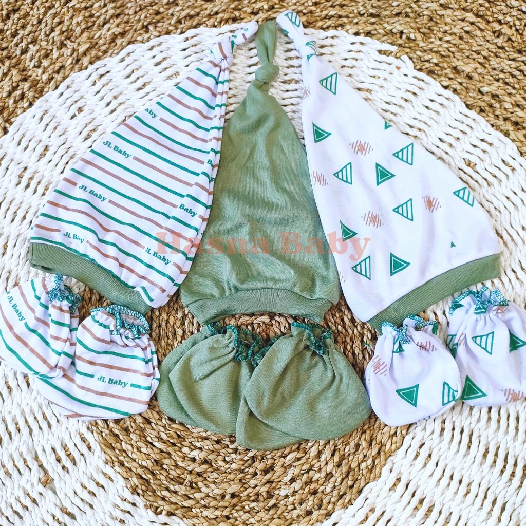 Detail Paket Topi Set Sartaki Bayi Baru Lahir Kupluk Sartaki Bayi Seri Hijau Sage- Juragan Lebak