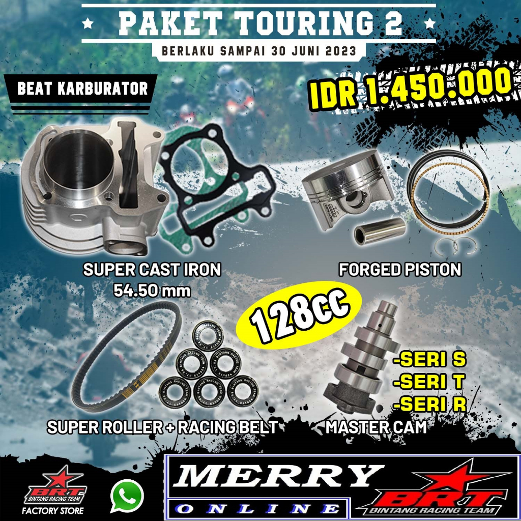 Paket Touring 2 BRT Bore Up Beat Karbu Karburator Blok Piston 54,5 Noken as Roller
