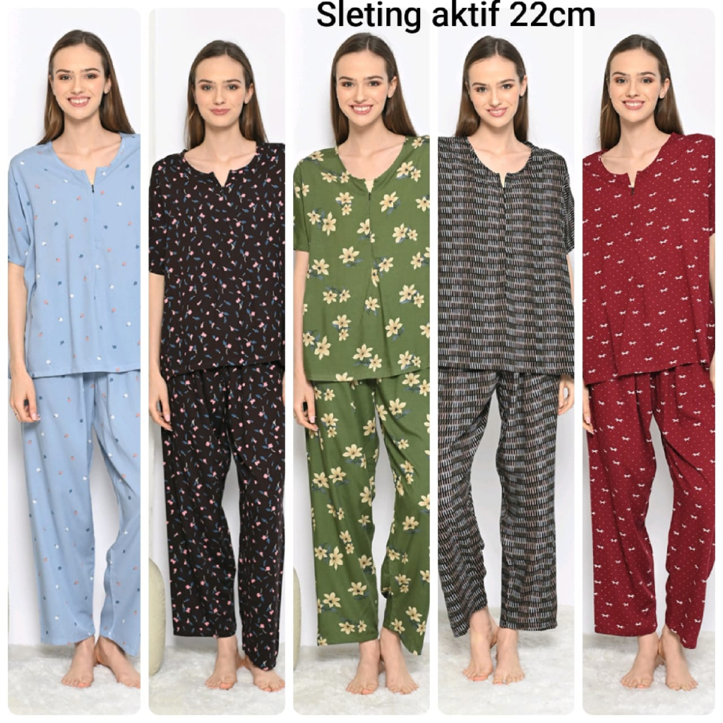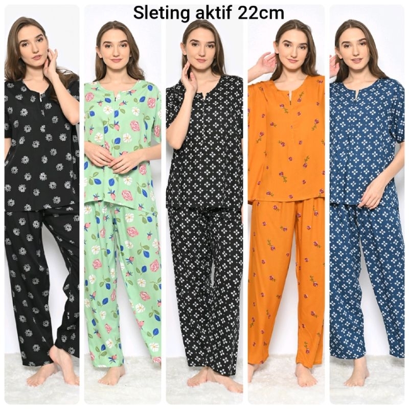 STELAN CELANA PANJANG RAYON PREMIUM BUSUI DENGAN SLETING AKTIF TANGAN PENDEK BAHAN LEMBUT DAN ADEM JAHITAN RAPI MEREK PAJAMAS DREAM/ HABEL LD 110 PANJANG BAJU 66CM LINGKAR PINGGANG FULL KARET 128CM PANJANG CELANA 96CM LINGKAR PAHA 70CM BAHAN TEBAL TIDAK TERAWANG STELAN OOTD