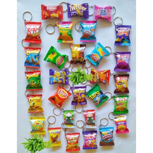 Ready paket usaha gantungan kunci snack 1 pack isi 50-100 pcs (belum termasuk bonus2) 1 biji cuma harga Rp. 900 Bahan aluminium foil warna cerah Sesuai foto varian Bisa dijual kembali maupun sebagai souvenir Murah meriah Ukuran kurang lebih 4 x 7 cm Order banyak lebih hemat ongkir Packing aman Langsung kirim